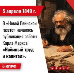 5 апреля 1849 года – В «Новой Рейнской газете» началась публикация работы Карла Маркса «Наёмный труд и капитал».