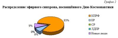Отдел ЦК КПРФ по проведению избирательных кампаний и ЦИПКР ведут исследовательский проект «Освещение деятельности политических партий на федеральных телеканалах». В данном аналитическом материале представлен хронометраж телерепортажей, посвященных мероприятиям парламентских политических партий в День Космонавтики.