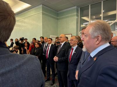 В открытии выставки приняли участие первый вице-спикер Государственной Думы А.Жуков, представители политических фракций Государственной Думы, представители Фонда Андрея Первозванного, деятели культуры, представители Патриархии.