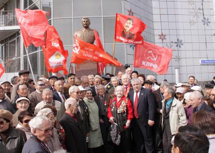 Секретарь ЦК КПРФ от имени коммунистов всей России искренне поблагодарил также руководителя ОАО «Алмазы Анабара» Матвея ЕВСЕЕВА (кстати, активного члена «Единой России». — Авт.) за увековечение памяти великого человека и отметил, что Матвей Николаевич мужественным поступком уже вписал свое имя в историю.