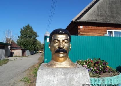 В частном секторе Октябрьского района Новосибирска совсем недавно появился памятник Иосифу Сталину. Вторую жизнь скульптуре подарил простой рабочий, экскаваторщик Виктор Дмитриев. Он нашел бюст вождя два года назад на территории промзоны в районе завода «Торговая площадь», в одном из ангаров и установил его перед забором своего дома.