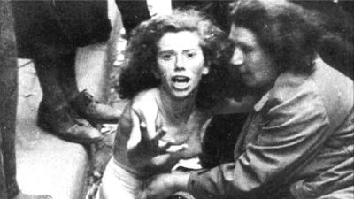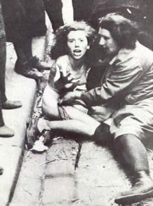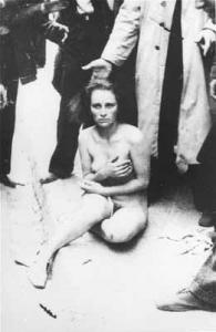 Девушка и пожилая женщина (скорее всего мать или другая родственница) среди толпы погромщиков.