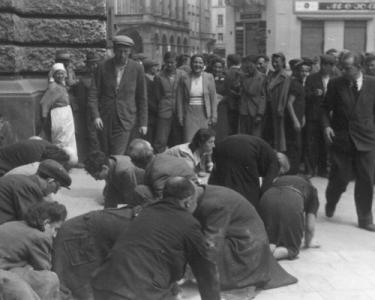 Издевательство путем публичного мытья тротуаров. Как в Вене в 1938 г. на погроме в честь аншлюса.