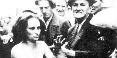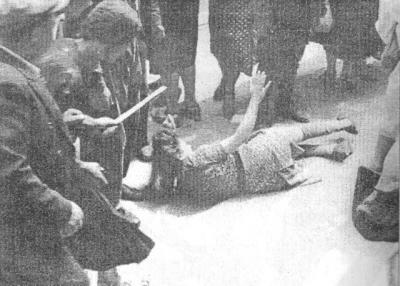 Предупреждение! На фото ниже - сцены уличного насилия, унижения женщин, издевательств в форме мытья тротуаров, маршей по улицам на коленях и с поднятыми руками, сгона жертв бандеровской милицией на работы в б.тюрьмы НКВД, где после различных издевательств их расстреливали во внутренних дворах.