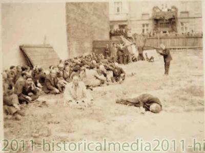 Избитого ногами мужчину с фото выше - утаскивают. Немец-часовой не вмешивается, "акция самоочищения" все-таки.