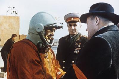 12 апреля 1961 г. с космодрома Байконур в 9 часов 7 минут мск стартовал космический корабль "Восток", пилотируемый Юрием Гагариным. Его полет длился 1 час 48 минут, корабль совершил один виток вокруг Земли. Спускаемый аппарат из-за сбоя в системе торможения приземлился не в заданном районе, а в Саратовской области, неподалеку от дер. Смеловка. В 9 часов 57 минут по московскому времени ТАСС передал сообщение: "12 апреля 1961 г. в Советском Союзе выведен на орбиту вокруг Земли первый в мире космический корабль-спутник "Восток" с человеком на борту. Пилотом-космонавтом космического корабля-спутника "Восток" является гражданин Союза Советских Социалистических Республик летчик майор ГАГАРИН Юрий Алексеевич". Новость вышла с запозданием, так как ожидалось подписание приказа о присвоении Гагарину звания майора (по личному настоянию первого секретаря ЦК КПСС Н.С. Хрущева).