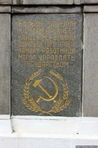 На памятной доске, установленной рядом с монументом значится: «Первый в мире памятник В. И. Ленину. Открыт 22 января 1924 года», на обратной стороне — «Автор памятника рабочий Глуховки Ф. П. Кузнецов».