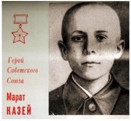 За мужество и отвагу пионер Марат Казей был удостоен звания Героя Советского Союза. В городе Минске поставлен памятник юному герою.