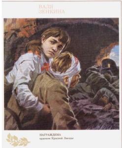 Брестская крепость первой приняла на себя удар врага. Рвались бомбы, снаряды, рушились стены, гибли люди и в крепости, и в городе Бресте. С первых минут ушёл в бой Валин отец. Ушёл и не вернулся, погиб героем, как многие защитники Брестской крепости. А Валю фашисты заставили под огнём пробираться в крепость, чтобы передать её защитникам требование сдаться в плен. Валя в крепость пробралась, рассказала о зверствах фашистов, объяснила, какие у них орудия, указала место их расположения и осталась помогать нашим бойцам. Она перевязывала раненых, собирала патроны и подносила их бойцам. В крепости не хватало воды, её делили по глотку. Пить хотелось мучительно, но Валя снова и снова отказывалась от своего глотка: вода нужна раненым. Когда командование Брестской крепости приняло решение вывести детей и женщин из-под огня, переправить на другой берег реки Мухавец - иной возможности спасти их жизнь не было, - маленькая санитарка Валя Зенкина просила оставить её с бойцами. Но приказ есть приказ, и тогда она поклялась продолжить борьбу с врагом до полной победы. И Валя клятву сдержала. Разные испытания выпали на её долю. Но она выдержала. Выстояла. И свою борьбу продолжила уже в партизанском отряде. Воевала смело, наравне со взрослыми. За отвагу и мужество орденом Красной Звезды наградила Родина свою юную дочь.