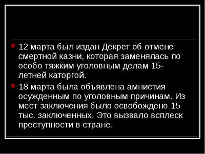 Временное правительство постановило: смертную казнь отменить.