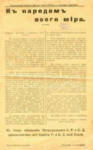 Петросовет обсудил, а затем принял подготовленное Исполнительным Комитетом "Воззвание к народам всего мира", в котором народам было предложено решение вопроса о войне взять в свои руки.