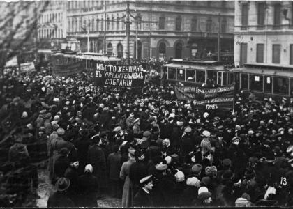 В Петрограде состоялась женская манифестация, организованная лигой равноправия женщин с требованием голоса в Учредительном собрании.