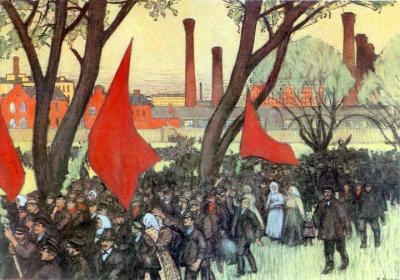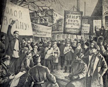 Заседание Русского бюро ЦК РСДРП(б): Из записок Александры Коллонтай: "Солнечный, весенний день. И настроение боевое, весеннее, полное смелого взлета надежд и напряжения воли. Утром — заседание бюро ЦК. В скромно-деловой редакции «Правды». Рассматривается и обсуждается письмо Ленина. Запомнилось единодушие. «Никакой поддержки Временному правительству», никаких «сговоров» с мелкобуржуазными партиями. Это в противовес ходкой в те дни формуле меньшевиков: «постольку — поскольку», то есть поддержка Временному правительству, хотя и с оговорками"