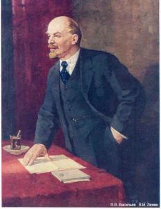 В.И. Ленин принимает участие в заседании бюро ЦК РСДРП(б), посвященном обсуждению "Апрельских тезисов".