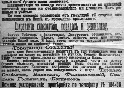Исполком Петроградского Совета обратился с воззванием "Ко всем гражданам" с призывом сохранять спокойствие, порядок и дисциплину.
