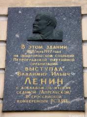 В.И. Ленин выступил в помещении морского кадетского корпуса на общегородском собрании Петроградской партийной организации с докладом об итогах VII (апрельской) Всероссийской Конференции РСДРП(б).