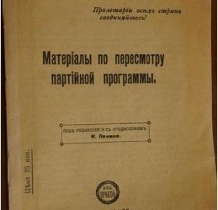 В.И. Ленин готовит к печати брошюру "Материалы по пересмотру партийной программы".