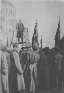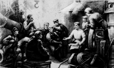 Общее собрание военно-артиллерийского завода присоединилось к написанной В.И. Лениным резолюции ЦК РСДРП(б) об экономических методах борьбы с разрухой.