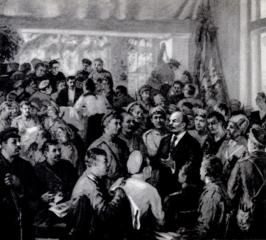 В.И. Ленин выступил на Всероссийской конференции фронтовых и тыловых военных организаций РСДРП(б) с докладами о текущем моменте и по аграрному вопросу.