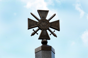 что на памятнике изображена эмблема укроармии – крест с мечами. И даже оную