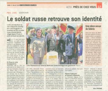 На церемонии, организованной ассоциацией "Французская память" ("Souvenir Français") выступил парижанин Жерар Суффле. Несколько лет господин Суффле упорно добивался, чтобы на безымянной могиле появилось имя похороненного в 1944 году советского партизана-"маки", жителя Рубцовска Александра Черкасова.