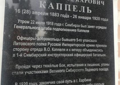 28 сентября 2018 года в Ульяновске состоялось открытие мемориальной доски белому генералу Владимиру Каппелю. В открытии доски на улице Тухачевского вблизи КПП Межвидового регионального учебного центра войск связи принимали участие глава Симбирской митрополии митрополит Анастасий, председатель Патриаршей комиссии по вопросам защиты семьи, материнства и детства протоиерей Дмитрий Смирнов, представители казачьих обществ, представители общества "Двухглавый орёл".