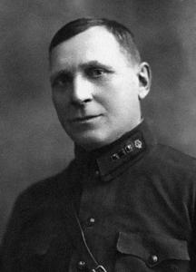 Вот он – в форме командира Красной Армии, с тремя кубиками и лирой на петлицах – бригадный капельмейстер.