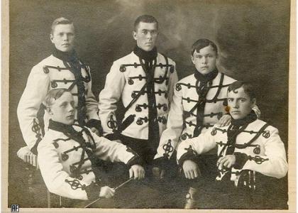 Вот они – те самые красные курсанты, в традиционных гусарских мундирах – но уже спороты плечевые шнуры с гомбочками, которые были у гусар вместо погон.