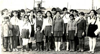 В нашей школе параллельно с якутскими классами мирно сосуществовали и русскоязычные. Нам никогда и в голову не приходила мысль, что кто-то другой национальности: эвенк, русский, якут или татарин. Мы всегда вместе играли и дружили еще с детсадовских времен. Пионеры нашего класса (“а”), где обучение шло преимущественно на якутском языке, каждый год в смотре песни и строя занимали первые места, несмотря на огромные усилия яркой и боевой “англичанки”, класрука параллельного русскоязычного класса (“б”) Людмилы Ивановны Климченко и ее подопечных.
