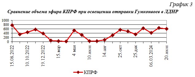 Сравнение объема эфира КПРФ при освещении отправки Гумконвоев в ЛДНР