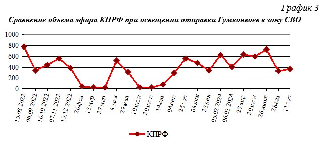Сравнение объема эфира КПРФ при освещении отправки Гумконвоев в зону СВО