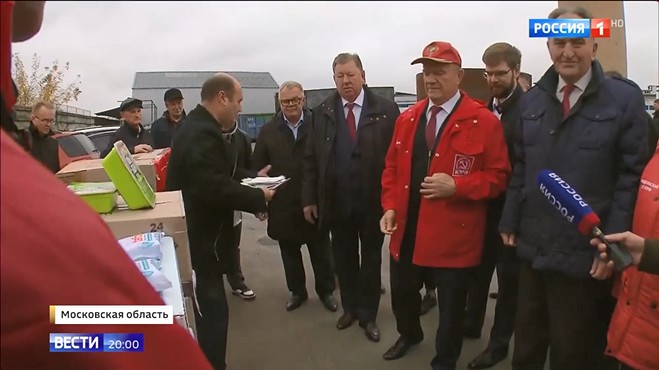 На «России» слова коммунистов звучали в течение 1 минуты 53 секунд эфира. Из них 1 минуту 12 секунд заняли слова Г. Зюганова.