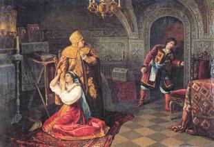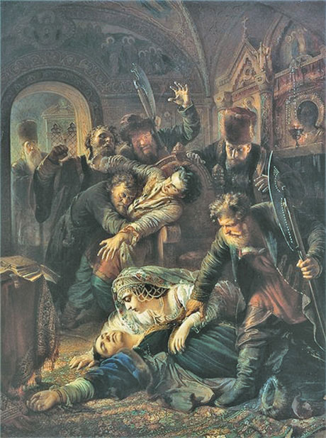 Последние минуты семьи Годуновых (царь Федор, царица Мария и царевна Ксения). Убийство сторонниками Лжедмитрия 16-летнего царя Федора Годунова и царицы Марии (1605)