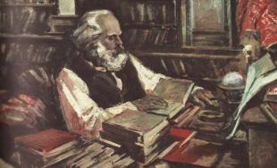«Когда Марксу было уже 50 лет, он принялся за изучение русского языка и, несмотря на трудность этого языка, настолько овладел им через каких-нибудь шесть месяцев, что мог с удовольствием читать русских поэтов и прозаиков, из которых особенно ценил Пушкина, Гоголя и Щедрина».