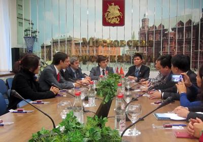 В столичном парламенте гостей встречали руководитель фракции КПРФ Андрей Клычков, руководитель аппарата фракции КПРФ Олег Маркин, советник депутата Сергей Тимохов, а также депутат муниципального собрания Лефортово Павел Тарасов. Приветствуя гостей, Андрей Клычков с радостью отметил, что Компартии России и Вьетнама связывают долгие дружеские отношения, московские коммунисты всегда готовы к сотрудничеству и обмену опытом. Депутат остановился на последних важнейших для России событиях - выборах депутатов Госдумы ФС РФ и массовых волнениях в связи с их фальсификациями. Андрей Клычков сообщил, что, даже, несмотря на многочисленные нарушения, Компартия значительно улучшила результат и удвоила свое представительство в Думе. Тем не менее, сейчас коммунистам предстоит ответственный период: «Борьба продолжается. Общемировые тенденции, приведшие к массовым волнениям в Греции, Испании и Северной Африке, обусловлены крахом буржуазной политики. Во всем мире существует тенденция восприятия и поддержки левых коммунистических взглядов, однако есть и силы, которые будут этому противодействовать».