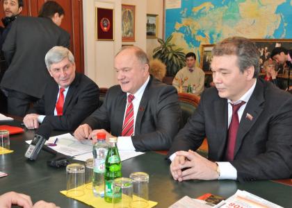 Встреча состоялась во фракции КПРФ в Госдуме. В ней приняли участие первый заместитель Председателя ЦК КПРФ, заместитель Председателя Государственной Думы И.И. Мельников и член Президиума, секретарь ЦК КПРФ, первый заместитель Председателя Комитета Государственной Думы по международным делам Л.И. Калашников.