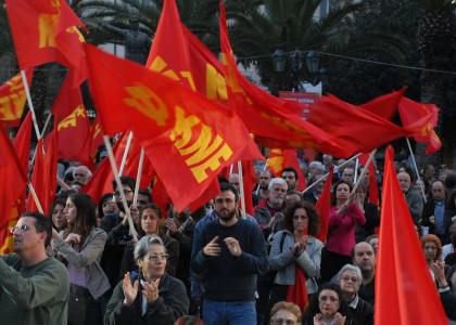 В среду 4 апреля Генсек ЦК КПГ А. Папарига выступила в народном районе Афин Каллифеа и подчеркнула по поводу создания «левого правительства»: «Вчера Ципрас (руководитель партии СИН) сказал, что когда будет создано левое правительство, банкиры передадут ему ключи. Видели ли вы в какой-либо стране мира, ведь уже были избраны левые правительства, чтобы банкиры передали им ключи правления? Народ должен отобрать у них этих ключи, не с согласия плутократии, не правительство, а народ. Забыли ли мы Чили, с героическим Альенде, который предпочел смерть капитуляции? Забыли ли мы Португалию, забываем происходящее в Венесуэле? Забываем ли мы, что происходит по всей земле, не только где было избрано левое правительство, но и правительство не на 100% удовлетворяющее плутократию страны? Он даже сказал следующее: что нам угрожают судовладельцы, что если будет избрано левое правительство, они заменят греческие флаги судов на либерийские. Однако их особняки в Греции и мы будем облагать их налогом. Думает ли он, что облагая налогом особняки промышленников и судовладельцев, находящиеся в Греции он сможет собрать много денег? То есть, он оставит им предприятия, позволит им забрать свои судна и уйти из Греции, позволит им забрать свои денежные вклады и уйти, оставит в их собственности заводы и обложит налогом особняки? То есть, налогообложение особняка послужит реорганизации экономики и перераспределению богатства? Обложить налогом особняки вместо обобществления, которое предлагаем мы (…). Мы выступаем за рабочую народную власть. Непосредственное решение для народа, текущее решение – это сильный народ и сильная КПГ».