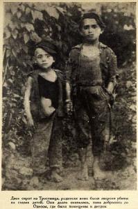 Из показаний вернувшегося из польского плена Ильи Тумаркина: «Прежде всего: при взятии нас в плен началась рубка евреев и от смерти избавился по какой-то странной случайности. На следующий день нас погнали пешком до Люблина, и этот переход был для нас настоящей Голгофой. Ожесточение крестьян было до такой степени велико, что маленькие мальчики забрасывали нас каменьями. Провожаемые проклятиями, бранью, мы прибыли в г. Люблин на питательный пункт, и здесь началось самое беззастенчивое избиение евреев и китайцев… 24/V-21г.».