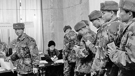 Что же в таком случае говорить о регионах! Наблюдатели от оппозиционных партий часто не допускались до подсчета голосов, на них оказывалось всяческое давление. Кроме того, были отмечены массовые махинации со списками избирателей. В них были включены сотни "мертвых душ" — людей, давно умерших или покинувших страну. Зато граждане, которые всегда исправно ходили на выборы, не находили себя в списках. Что касается дополнительных списков, то их использование было отменено, и человек мог добиться участия в выборах только через суд. В результате в судах Киргизии 16 декабря выстроились огромные очереди.