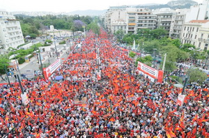 На площади “Педио ту Ареос” состоялся 15 мая большой митинг Коммунистической партии Греции (КПГ). Это было красное море демонстрантов. В их лозунгах и пульсе митинга отражалась решимость целого народа сопротивляться, бороться, защищать свои права и классовой борьбой открыть новые пути. Всегреческий митинг партии был одной из самых массовых акций состоявшихся за последние годы в Афинах. В нём приняли участие демонстранты со всех уголков страны: тысячи коммунистов, сторонники Компартии Греции и КМГ (Коммунистической Молодёжи Греции), соратники коммунистов в рядах Всерабочего боевого фронта (ПАМЕ) и других массовых структурах народного движения, радикально настроенные борцы, представители науки и искусства. Отзвук митинга умножится в последующие дни. Он проявится вскоре, когда от всех потребуется проявить большую ответственность. Он проявится в повседневной народной борьбе, в улучшении её организованности, в неутомимой деятельности КПГ и КМГ для построения народного фронта, борющегося за другой путь развития, за народную власть и экономику, за социализм.