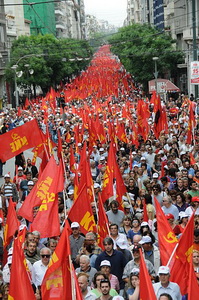 «Правительство нагло лжет, когда утверждает, что трудности продлятся лишь 3 - 4 года. Эта прогнившая до основания система не вечная. Жертвы народа помогут лишь капиталистам и монополиям. Даже если предположить, что греческая экономика быстро преодолеет кризис и оживится, народу всё равно будет хуже.