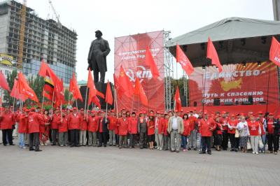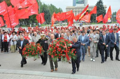 Утром Г.А. Зюганов, лидер компартии Украины П.Н. Симоненко, представители компартий, входящих в СКП-КПСС, депутаты фракции КПРФ в Государственной Думе, коммунисты и комсомольцы возложили цветы к памятнику В.И. Ленину. Затем цветы были возложены к монументу воинам-освободителям Донбасса.