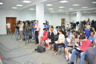 Затем Г.А. Зюганов и П.Н. Симоненко провели пресс-конференцию для представителей СМИ. Выступая перед журналистами, Г.А. Зюганов напомнил, что Донецкая область – одна из уникальнейших. Здесь было семь металлургических заводов, добывалось 150 миллионов тонн угля. Сегодня Донецкая область дает 22% ВВП Украины. И эта промышленная мощь создавалась усилиями всего советского народа. «Поэтому не случайно, что именно на Донецкой земле мы начинаем поход за возрождение нашего Союза», - подчеркнул Г.А. Зюганов.