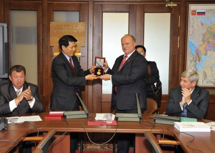 Ли Хуэй напомнил, что в 2009 году отмечалась 60-я годовщина установления дипломатических отношений между СССР и КНР. В связи с этим руководство Китая приняло решение наградить 60 человек памятными медалями. Среди них – Председатель ЦК КПРФ Г.А. Зюганов.