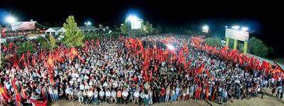 На фестивале состоялся крупный митинг, на котором выступила Генсек ЦК КПГ Алека Папарига.