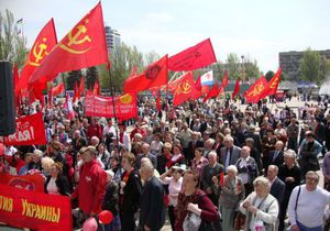 Участники акции с красными знаменами Коммунистической партии Украины (КПУ), а также других политический партий и общественных организаций "Союза чернобыльцев", "Союза офицеров" потребовали от руководителей государства "отозвать законопроект правительства № 9127, который предусматривает лишение льгот большинства населения Украины", а также отменить пенсионную реформу