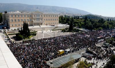 На этот раз организованные группы и анархо-фашистские элементы, вооруженные бомбами Молотова, свето-шумовыми гранатами, камнями, преднамеренно попытались распустить крупную демонстрацию трудящихся и народа на площади Синдагма, осуществляя нападение на манифестантов Всерабочего боевого Фронта (ПАМЕ). В результате этого нападения скончался член профсоюза ПАМЕ, секретарь муниципального отдела профсоюза строителей Афин в районе “Виронаc”, 53 летний Димитрис Котзаридис, и были ранены десятки манифестантов ПАМЕ.