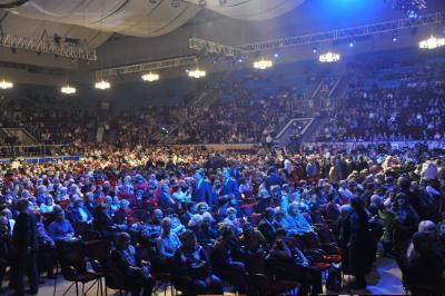 15 ноября в Москве в концертном зале «Россия» состоялся юбилейный концерт заслуженного коллектива Республики Беларусь -ансамбля «Сябры» под руководством народного артиста Республики Беларусь А.И. Ярмоленко. В ходе вечера под громкие овации семитысячного зала на сцену поднялся лидер КПРФ и Народного ополчения имени Минина и Пожарского Г.А. Зюганов. Он поздравил А.И. Ярмоленко с Днем рождения, наградил участников ансамбля памятной медалью ЦК КПРФ «50 лет космонавтике».