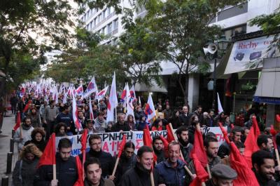 Тридцать восемь лет после восстания студентов Политехнического института и рабочих Афин против военной диктатуры десятки тысяч трудящихся, студентов, молодёжи и безработных приняли вчера участие в крупной антиимпериалистической демонстрации к посольству США в центре Афин. Аналогичные демонстрации состоялись в десятках городах Греции. Участники выступлений громогласно и ясно выступили против правительства чёрного фронта плутократии ПАСОК-НД-ЛАОС, которое уже реализует варварские меры по урезанию зарплат и пенсий, по сбору поголовных налогов и продвигает приватизацию государственной собственности во вред рабочим и народным семьям.