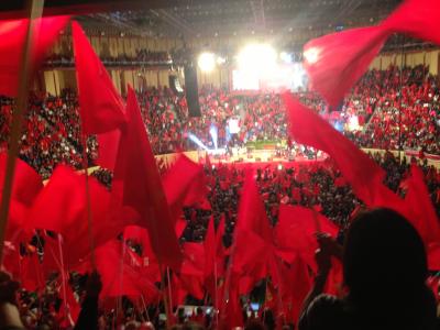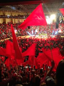 Бурной овацией были встречены ветераны партии, представители коммунистической молодёжи, боевых профсоюзов.